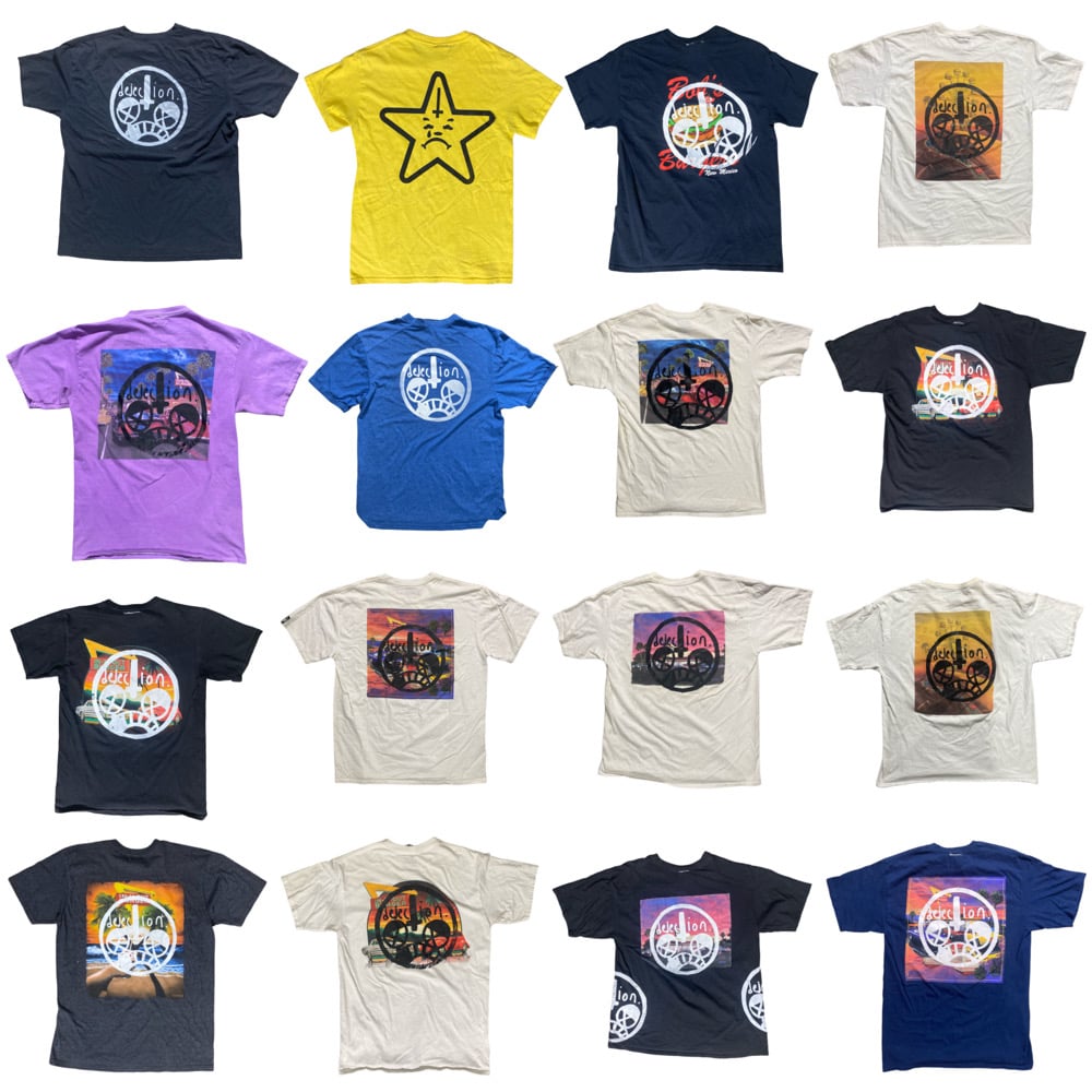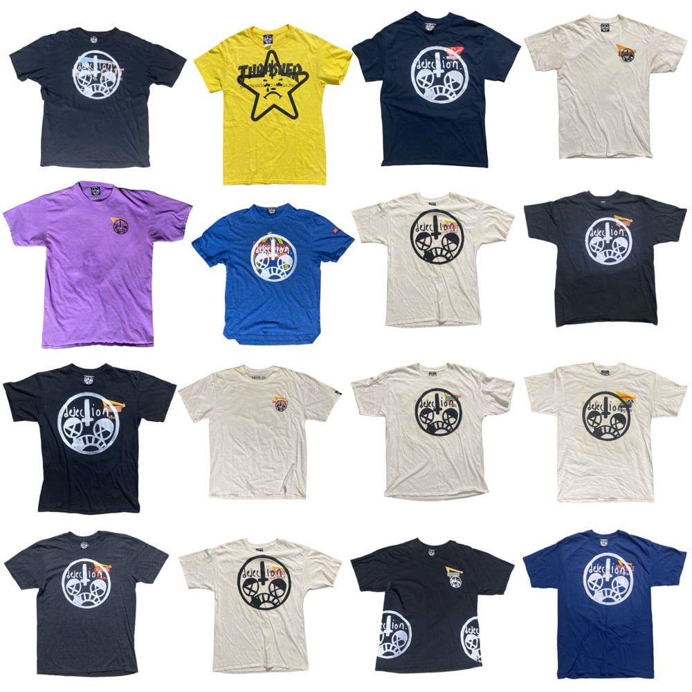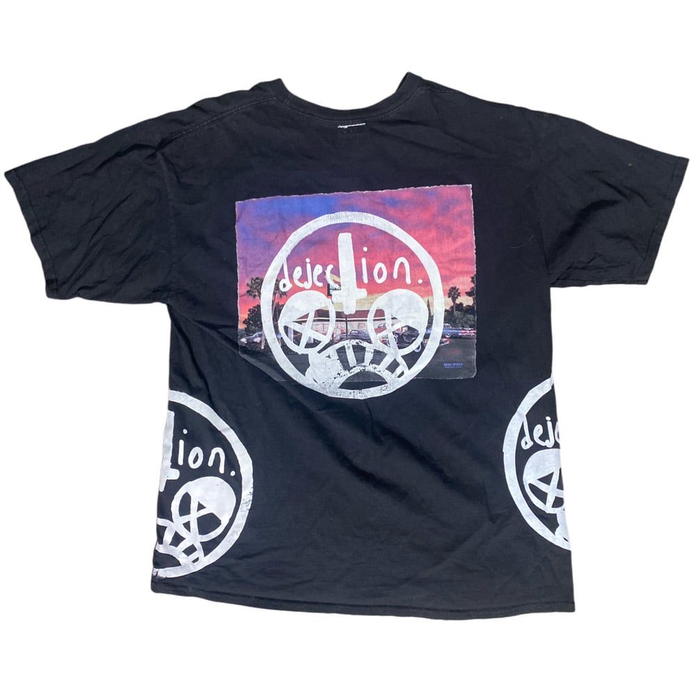 Every single piece is unique and never will be replicated. All 1 of 1 Hand sourced pieces, meticulously chosen and upcycled in New Mexico by me. All hand screenprinted, front and back, with hand sewn woven mask logo label on neck, in house, by hand, by me. Every order comes with a free sticker, hand signed business card and hand drawn poster while supplies last!