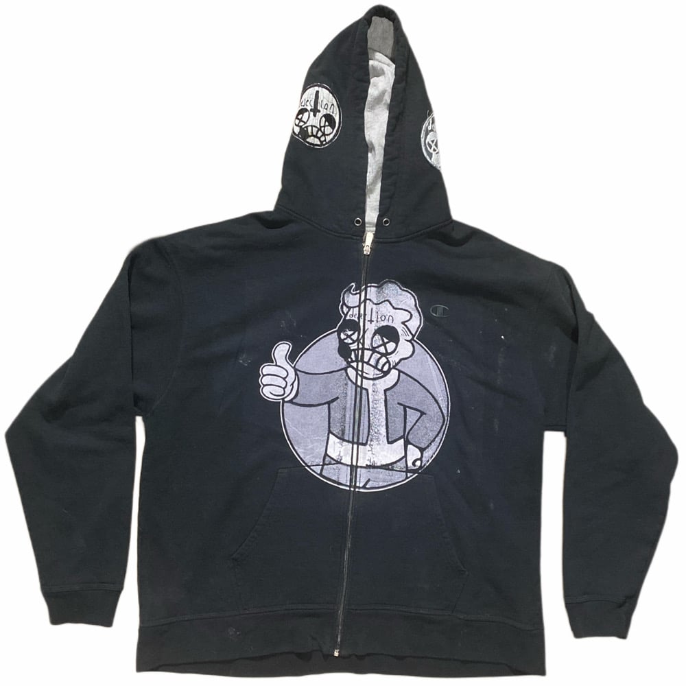 - 2XL champion Vault Boy zip up hoodie with patches