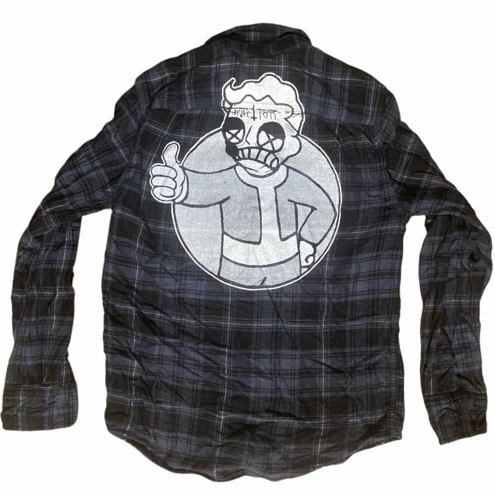 - M patched Vault boy grey/black flannel