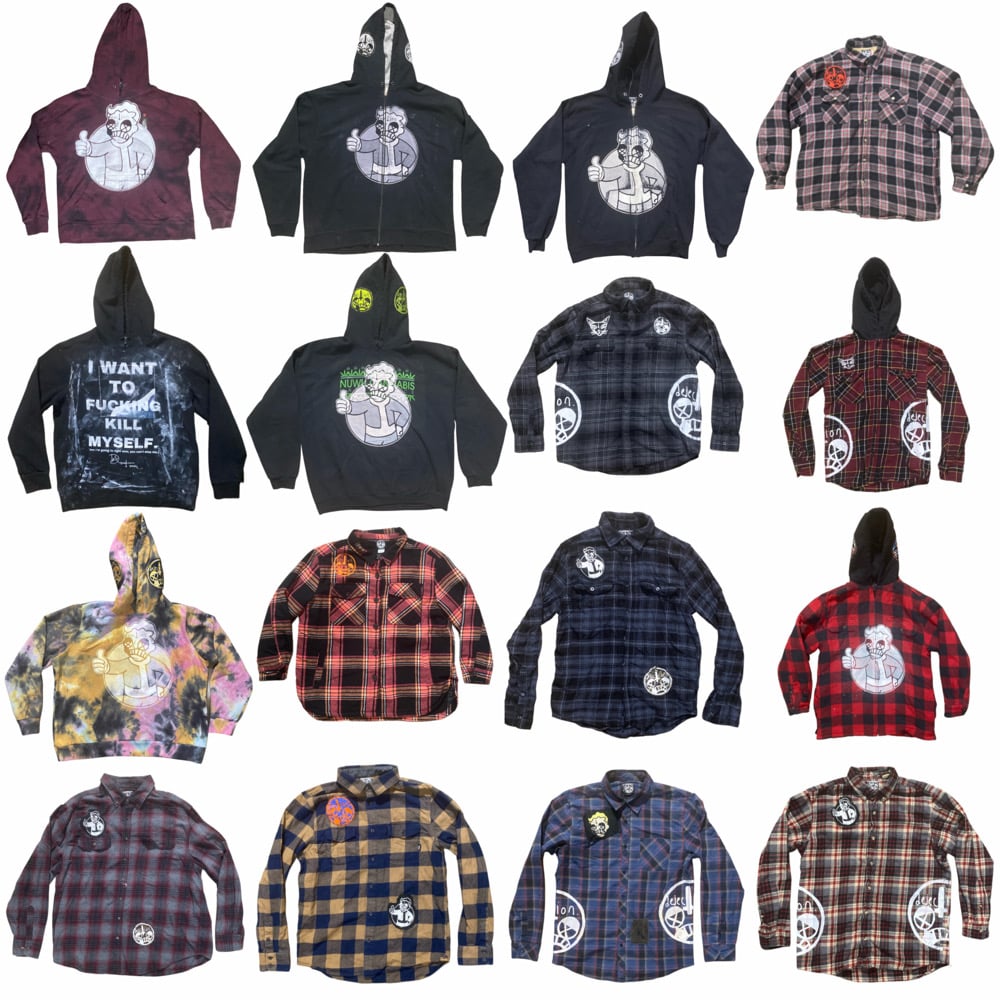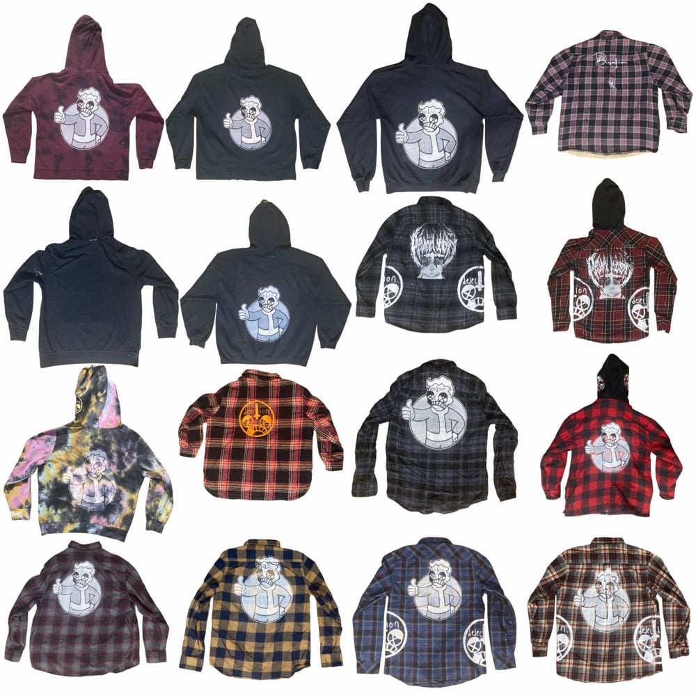Upcycled Outerwear drop 2025 featuring quality pieces from name brand companies, hand selected and upcycled by me via screenprinting, embroidery, cut and sew, airbrush or a combination of all. Had these in the vault. Time to drop. Time doesnt last forever and neither do you. Enjoy and consume while you can.